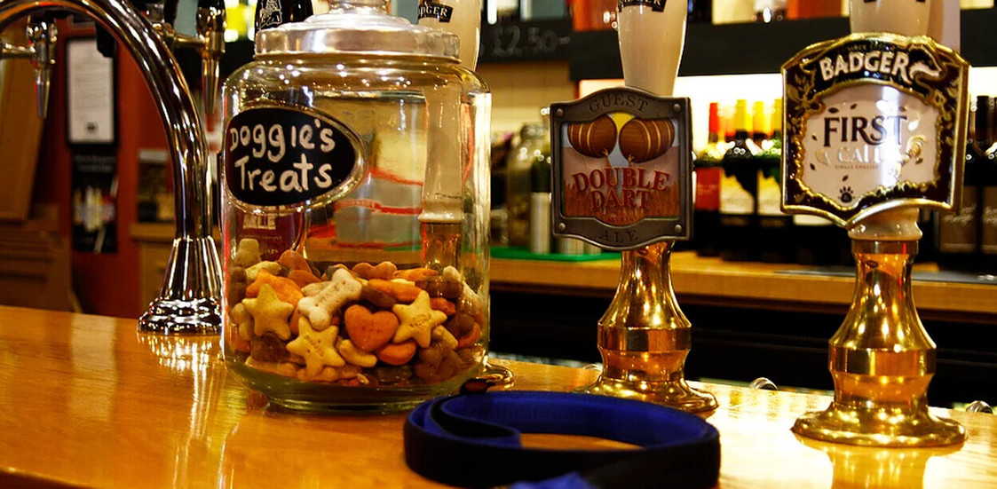 Well behaved dogs on leads are welcome inside the bar areas as well as the garden.